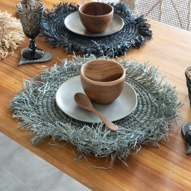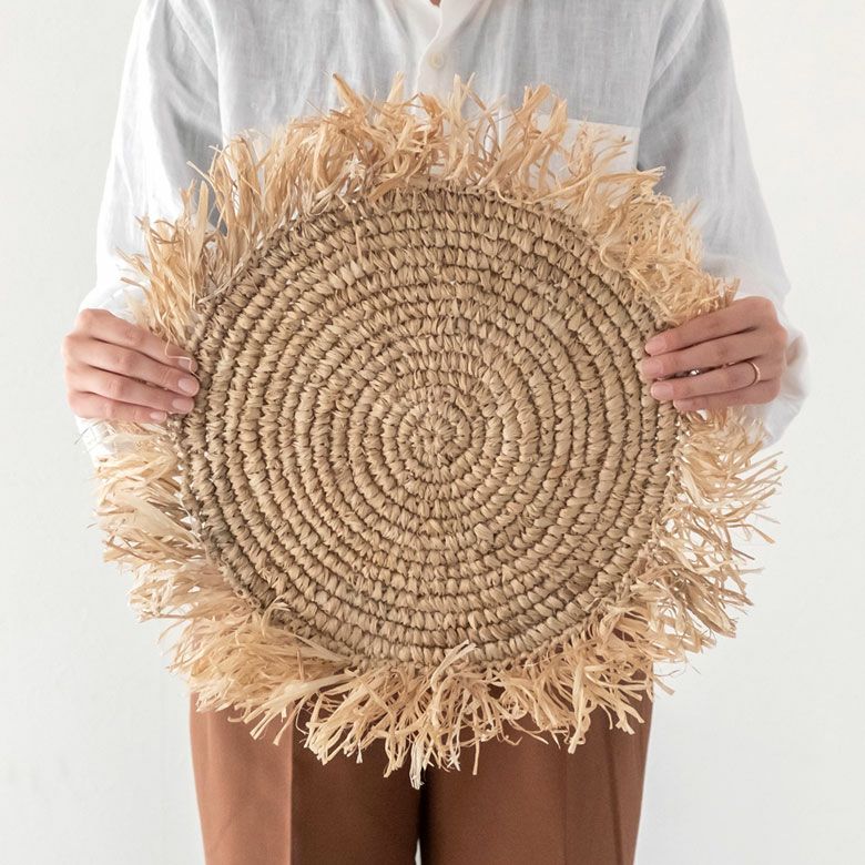 ナチュラルなラフィアを丁寧に編みあげたランチョンマットは