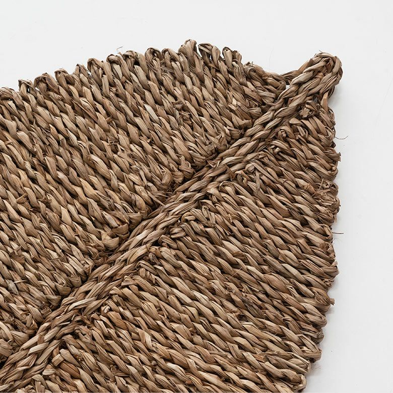 | ご注意 | ※シーグラスを使用している商品ですので、開封当初は草のにおいがしますが時間が経つと薄れてきます。 ※天然素材が原材料のため、素材特有のシミやキズ、繊維割れが部分的に出てしまう場合がございます。 ※摩擦・汗や雨による水濡れによって色落ち、色移りの恐れがあります。特に白いテーブルはご注意ください。 ※ハンドメイドのため形・サイズに多少のバラ付きがございます。また、同じ素材でも色の染まり方に個体差が生じる場合がございます。 |