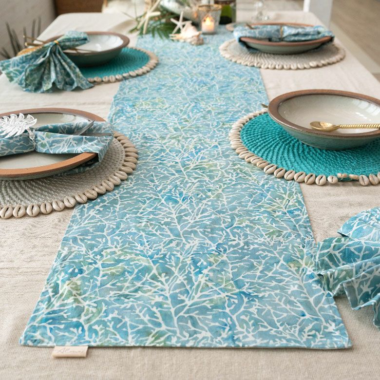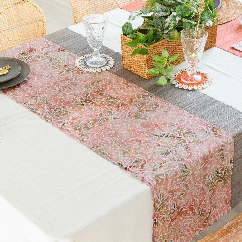 インドネシアの伝統的な染め物バティックで作られたテーブルランナー。