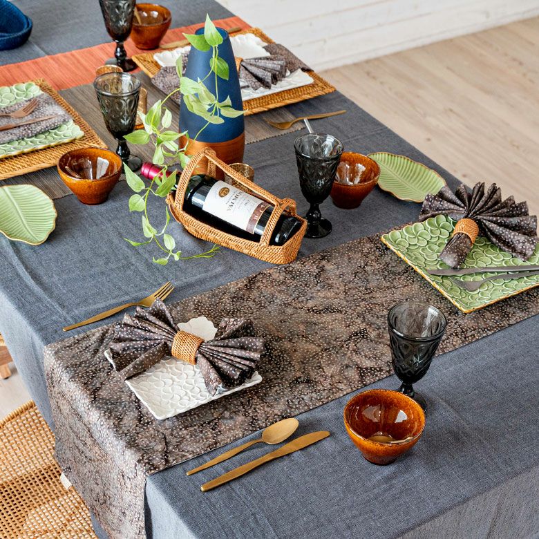 このマットを加えるだけで、いつものテーブルがバリ気分に。
