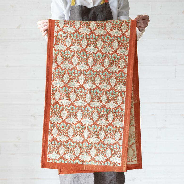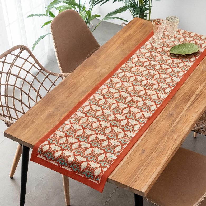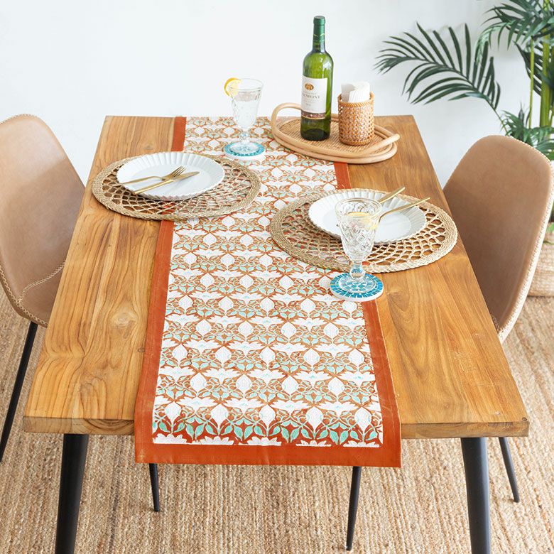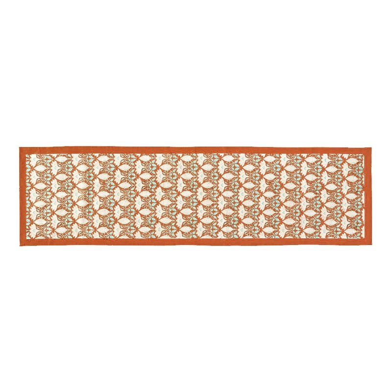 Payung店舗でも人気のこちらは、優しいオレンジ×ソフトなターコイズのアクセントが入ったオリエンタルな模様のランナー。