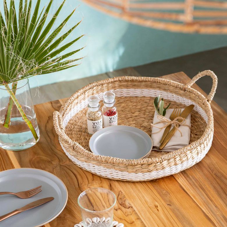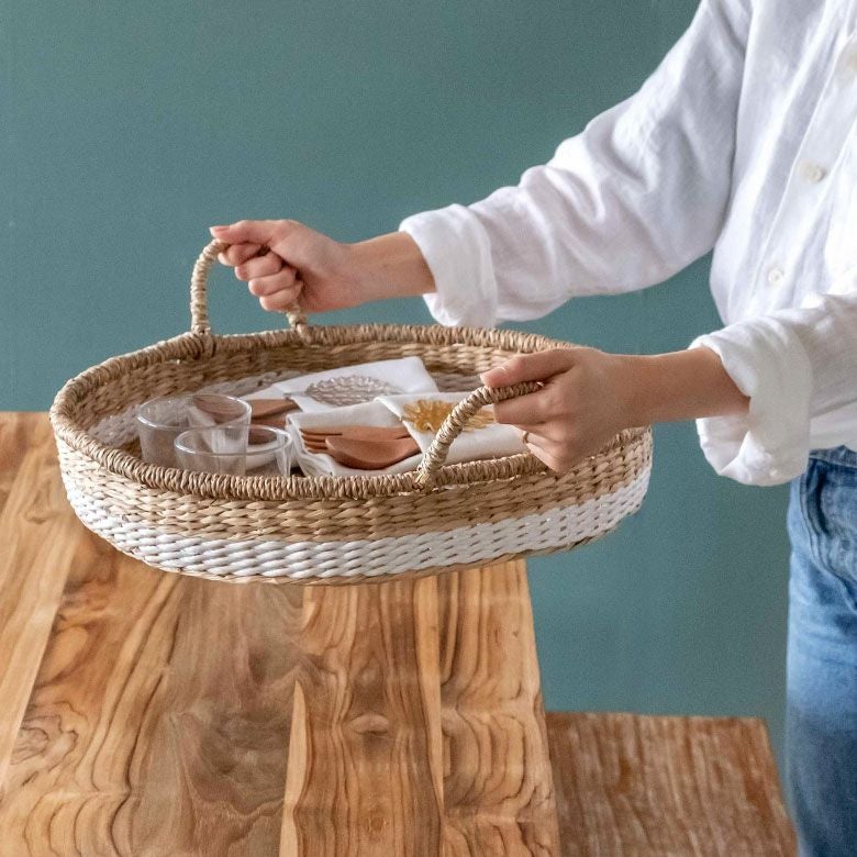 しなやかな曲線が美しい、籐のお盆。ランチトレーにも。