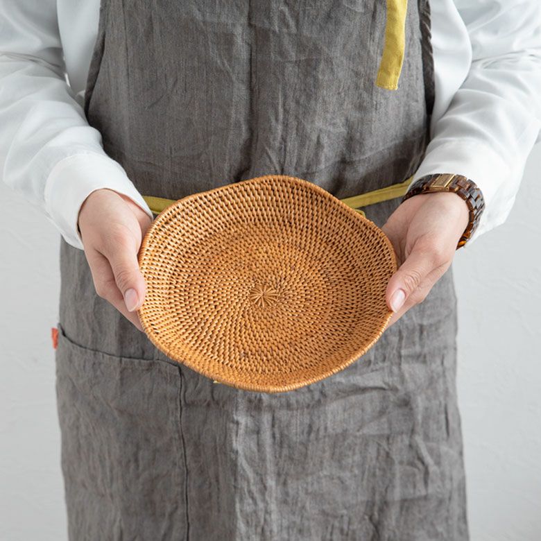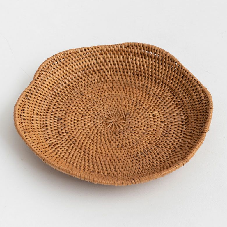 | ご注意 | ※トレイ上のアイテムは商品に付属しません。 ※ハンドメイドのためサイズ・形が写真と異なる場合があります。 ※複数枚を同時にお買い求めの際はサイズに若干のバラつきがでる場合があります。 ※乾燥によってアタの繊維が収縮すると”ゆがみ”が生じる場合があります。小さなゆがみであれば逆方向にひねれば解消することができます。強くひねり過ぎると壊れる場合もありますのでご注意ください。 ※ココナッツの殻で燻していますので、香ばしい香りがします。 |