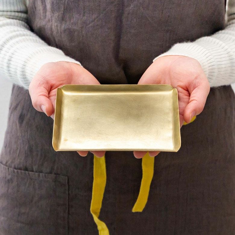 | ご注意 | ※ご使用後は食器用洗剤で洗い、水気を拭き取ってください。そのままにしておきますと変色の原因になります。 ※長時間ご使用いただきますと表面の色合いが変化してきます。真鍮製品ならではの風合いをお楽しみください。 ※元の色合いに戻したい場合は、市販の真鍮用研磨剤や食器用研磨剤で磨いてください。 ※手作りのため形や大きさなど多少異なる場合があります。 |