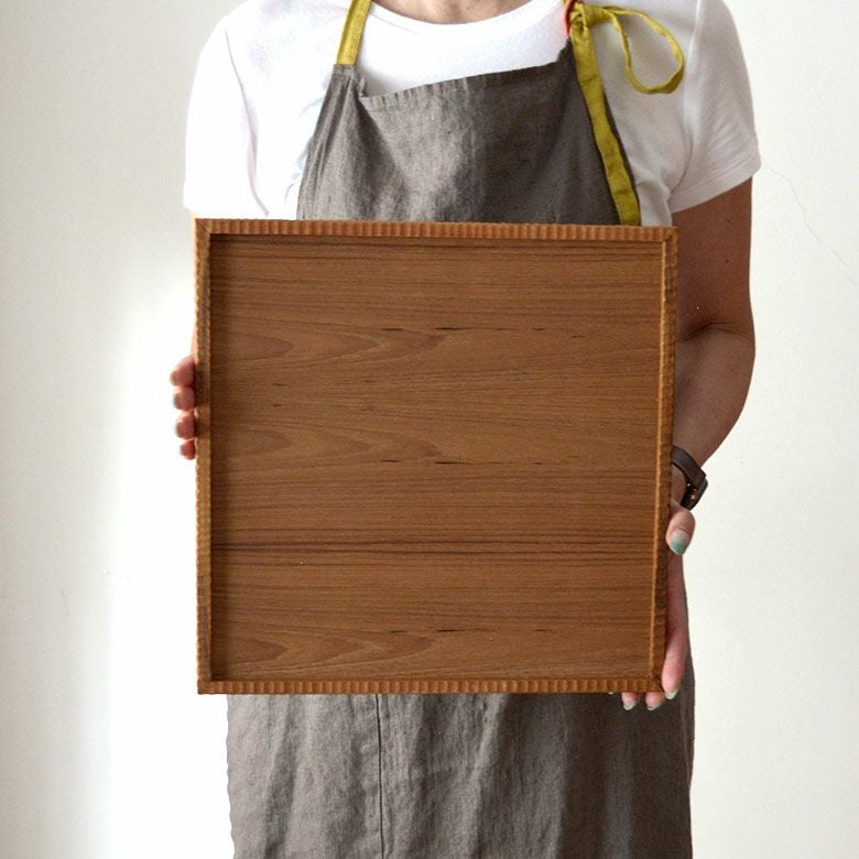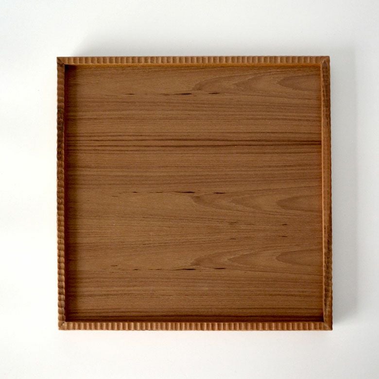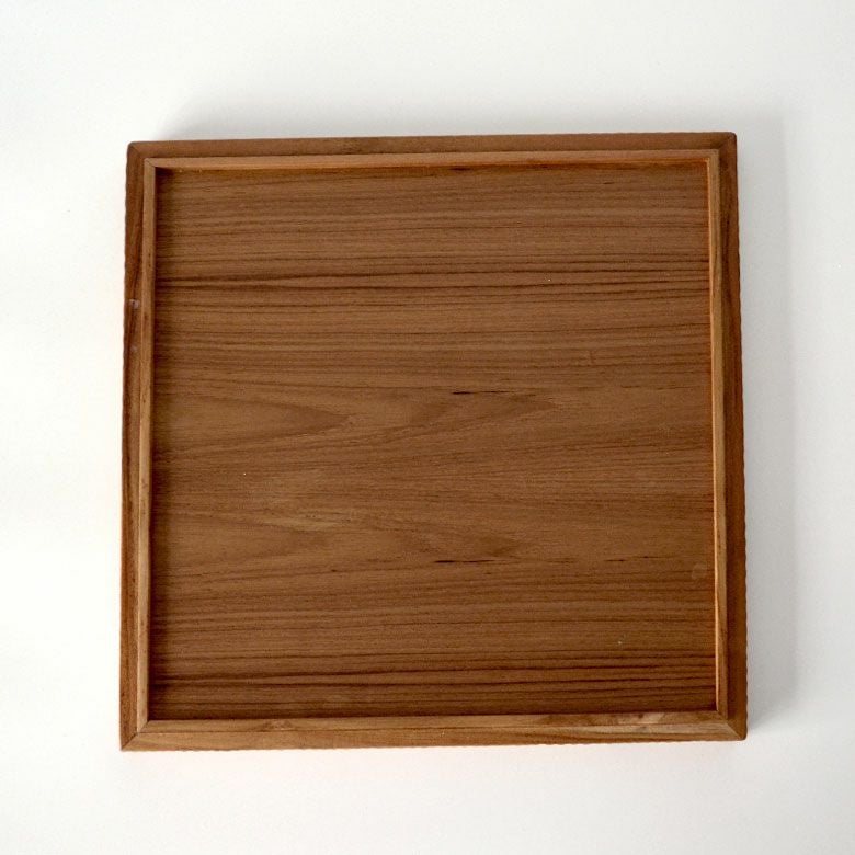 チークの木肌が思う存分楽しめるスクエアトレイ。縁がついているので持ち上げるのも簡単でトレイ使いの他、ランチョンマットのようにそのままお食事トレイとしてもお使い頂けます。