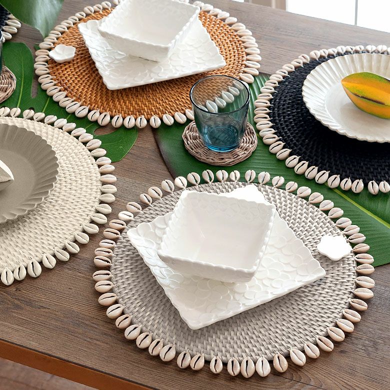 リゾート感あふれるランチョンマットやテーブルランナーなどを置くだけで、食卓が一気に華やぎます。