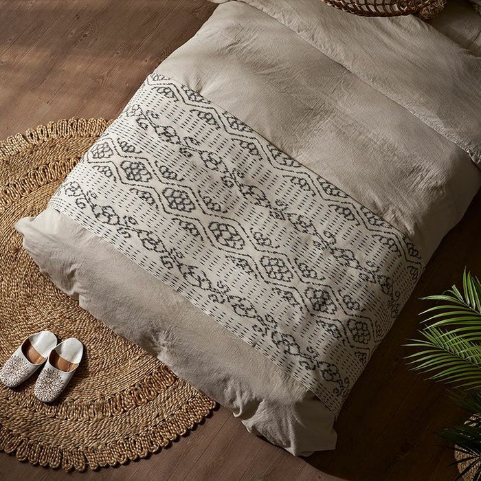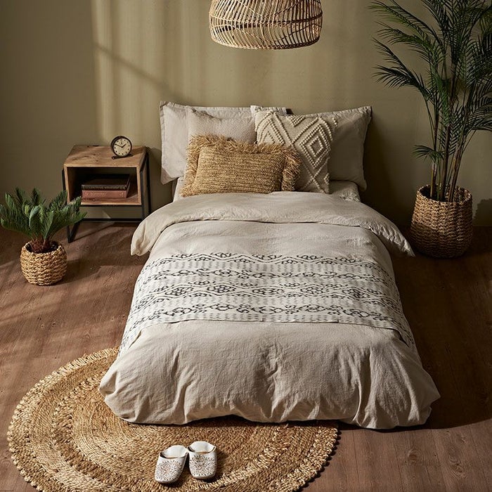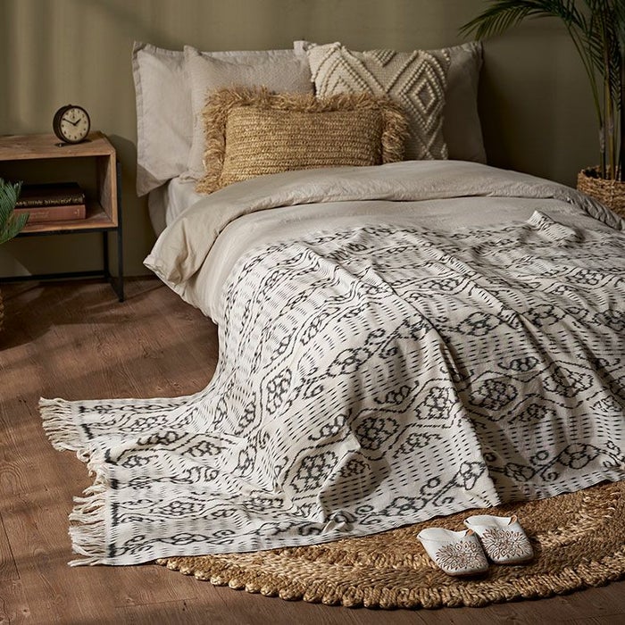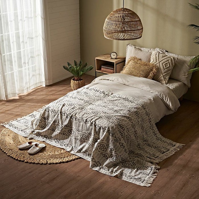 大判サイズなので、ウォールデコレーションだけでなく、 広げてテーブルクロスやベッドスプレッドにしても。 様々な使い方で楽しんで。
