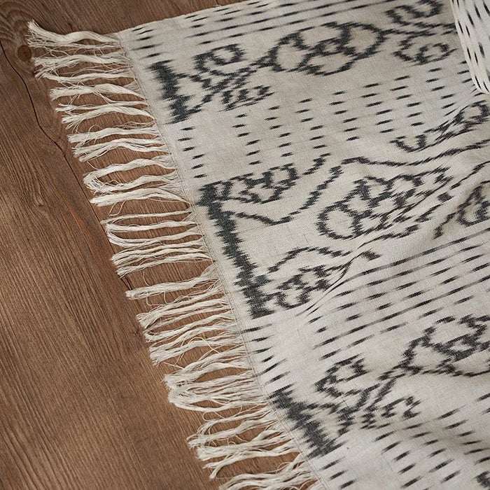 Ikat(イカット)はインドネシア語で「縛る・結ぶ」という意味。染めた糸を織って模様を表現する伝統的な織物です。イカットの特徴はかすれたような奥行きのある模様。この独特な風合いは、「絣(かすり)」という技法を用いられることにより生まれます。