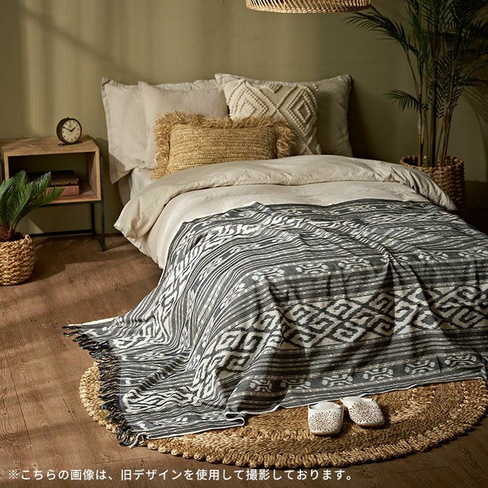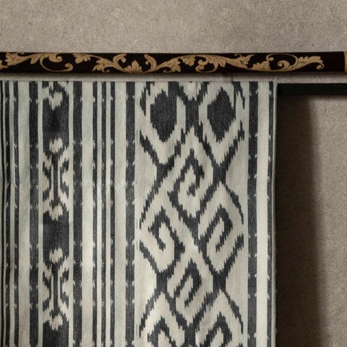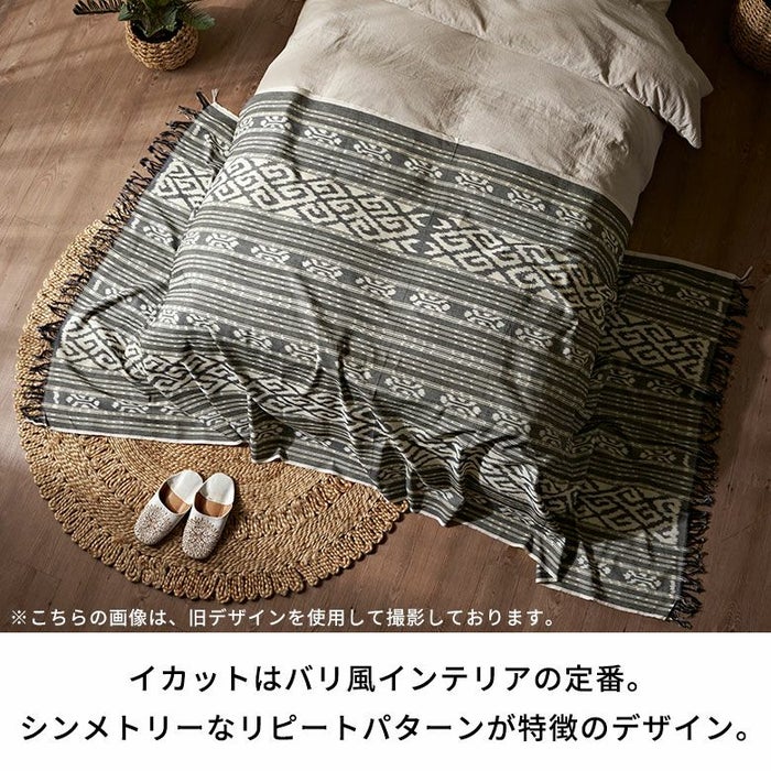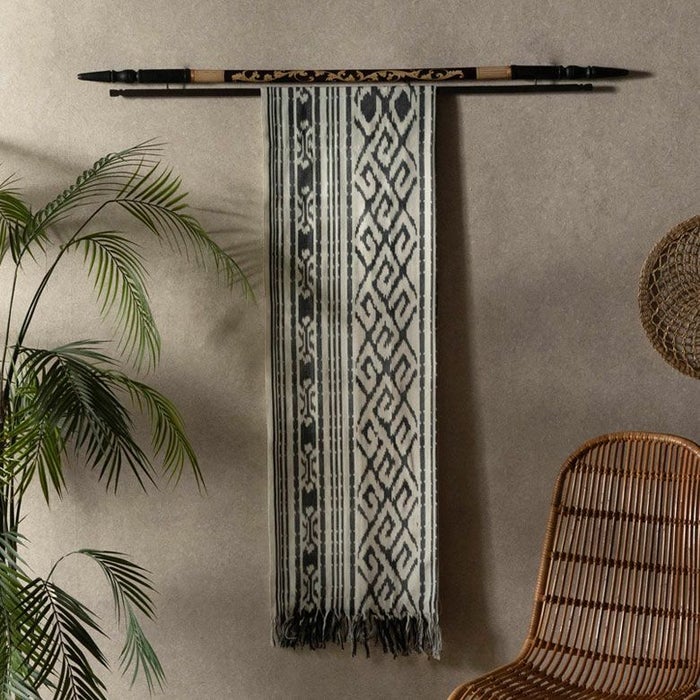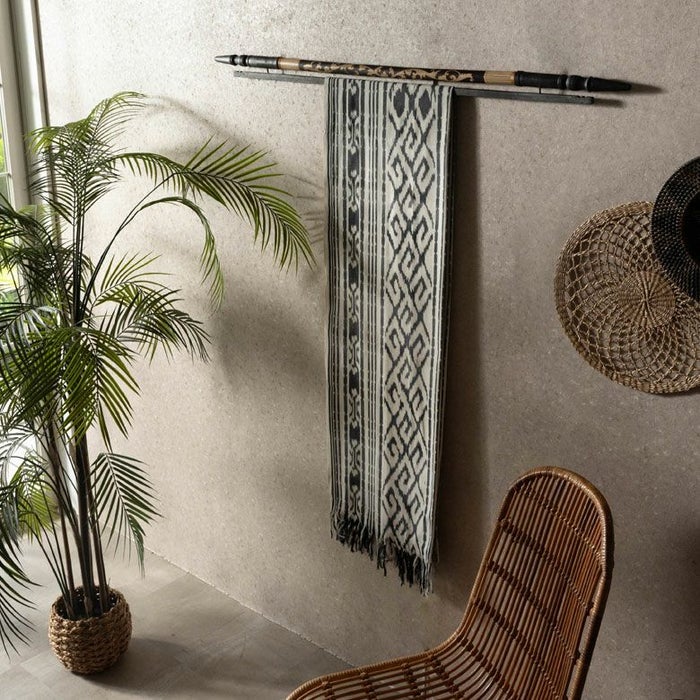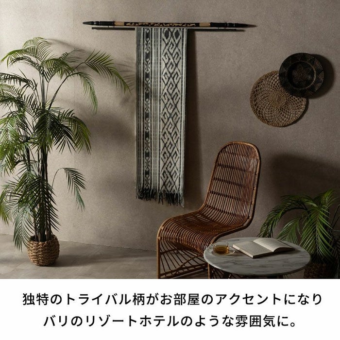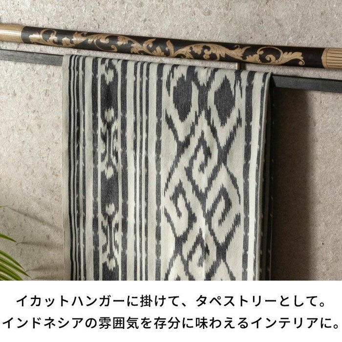 230×115cmと大判のこちらのイカットは、タペストリーのように壁に掛けるのはもちろん、空間の間仕切りとして使ったり、ベットスローやテーブルクロスとしてお使いいいただくのも素敵です。柄がプリントされているタイプの生地と違い、織物ならではの柄の立体感は、飾る空間をより立体的に、奥行きがあるように見せてくれます。単調な柄ではないため、生地の見せる部分によって雰囲気が変わるのも、イカットの面白いところです。