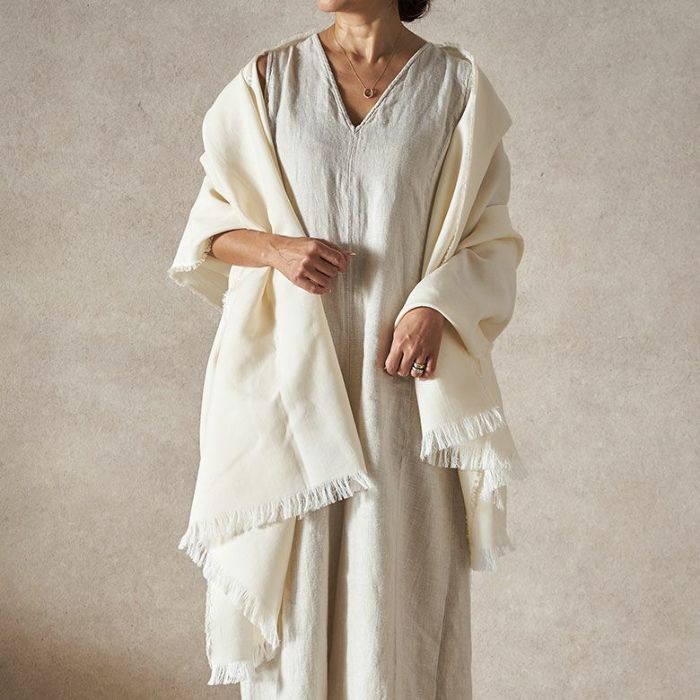 自然の恵×伝統の技が織りなす優しい肌触り。シャリっとしつつも柔らかい触り心地は季節を問わず鞄に入れておきたくなる安心感。旅や乗り物移動などで体温調整が難しいかも、と思ったらお守りのように鞄に入れて行って頂きたいストールです。