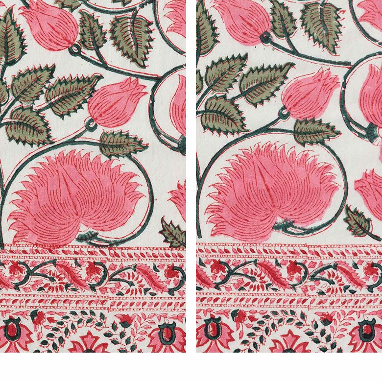 | ご注意 | ※摩擦や水分で色落ちする場合があります。 ※染料のにおいがすることがありますが袋から出しておくと数日でにおいは和らぎます。においが気になる場合はぬるま湯で洗って外干ししてください。 ※手作業でのブロックプリントのため、色や柄の擦れやズレがあります。 ※水洗いする場合は色落ちの可能性がありますので他のものと分けて洗ってください。 ※洗濯で縮む可能性があります。 ※漂白剤は使用できません。 ※アイロンは低温でお使いください。 ※ハンドメイドのためサイズ・形が写真と異なる場合があります。 |