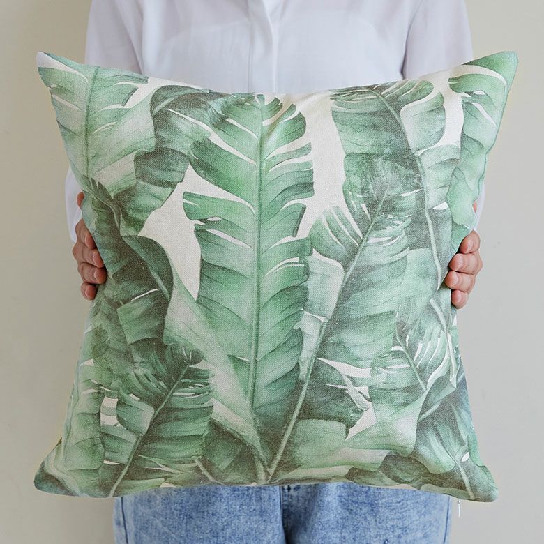 水彩画のような優しいタッチがリラックスムード漂うクッションカバー。
