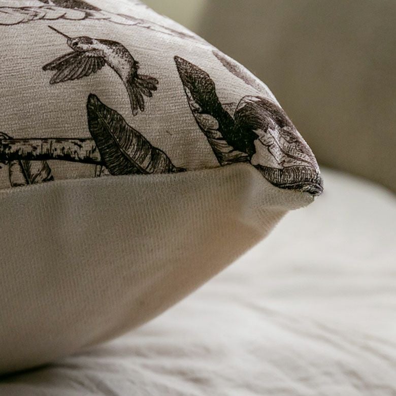 ジャングルアートのようなリラックスムード漂うクッションカバー。