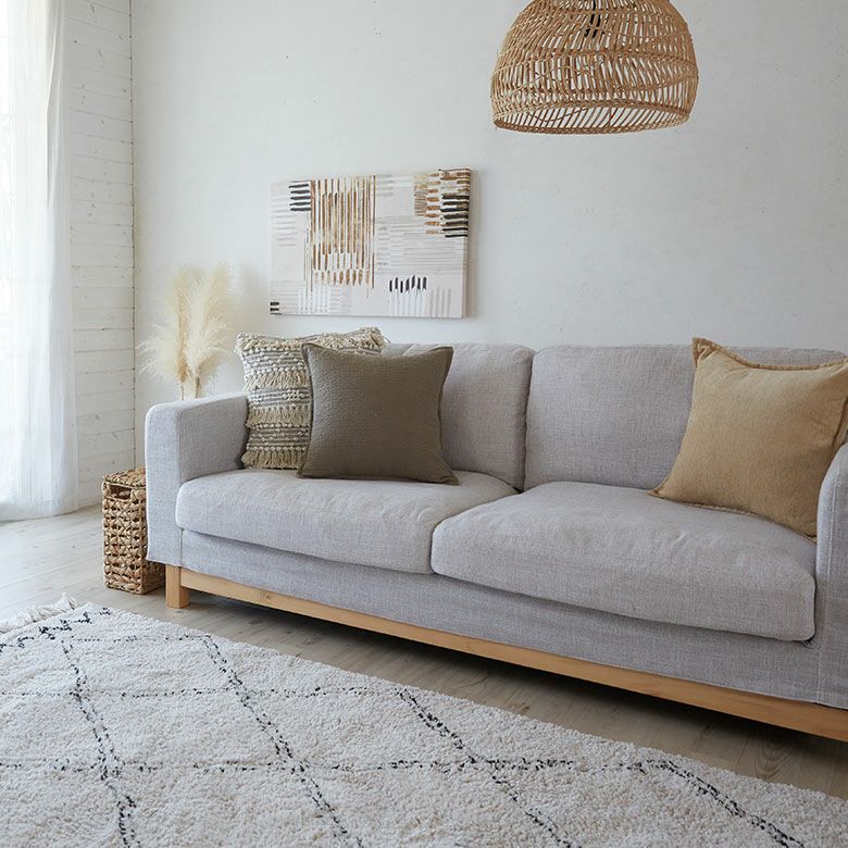 どんな柄と合わせても馴染みがよく、シーンを選ばす使えるおすすめのクッションです。