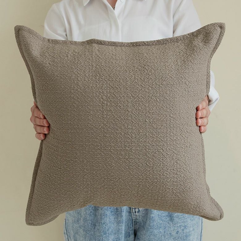 手撚りの生地のような、柔らかい感触のクッションカバー。