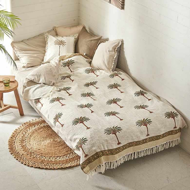 クッションカバーをはじめ、ベッドシーツなどのファブリック。リビングルームや寝室に欠かせないファブリックは、普段の生活に落ち着きと癒しを与えてくれます。