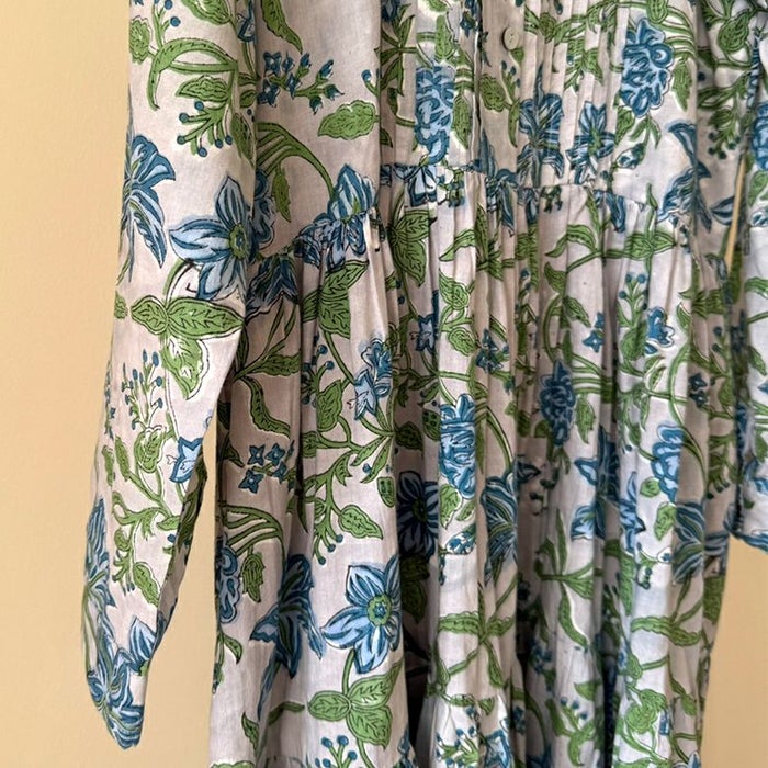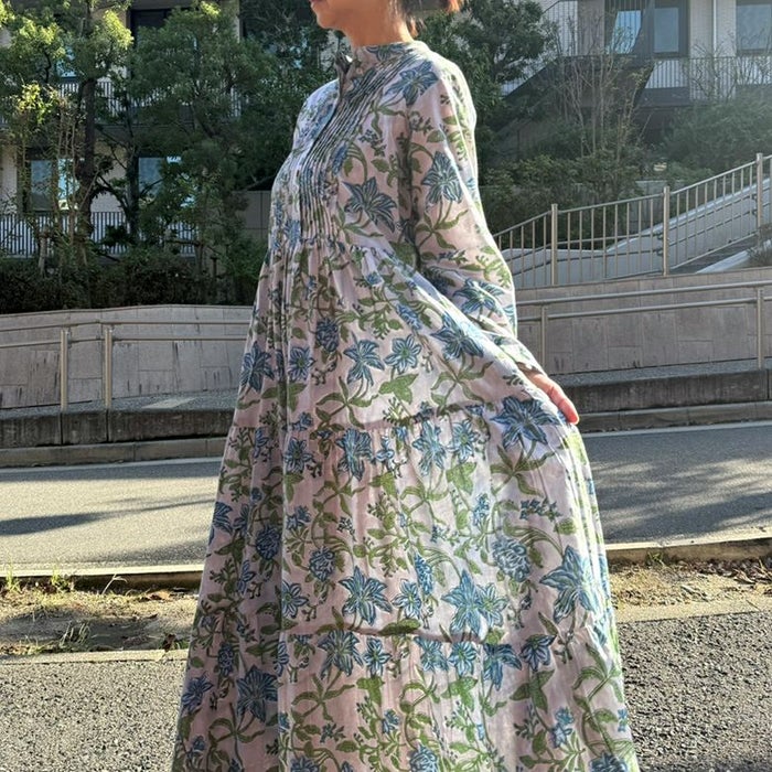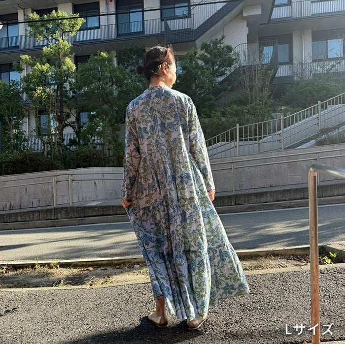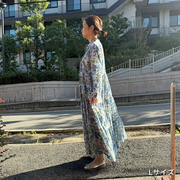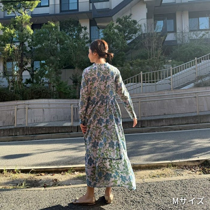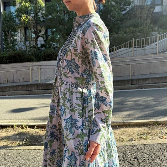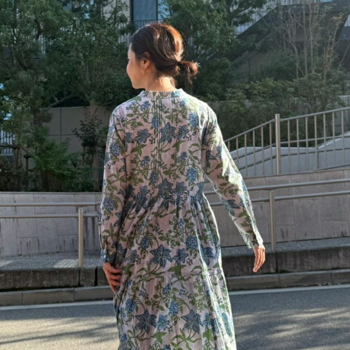 一枚あると気分が上がる花柄ワンピース!コットン100%の軽やかさとブロックプリントの華やかさが気持ちを上げてくれるワンピースです。