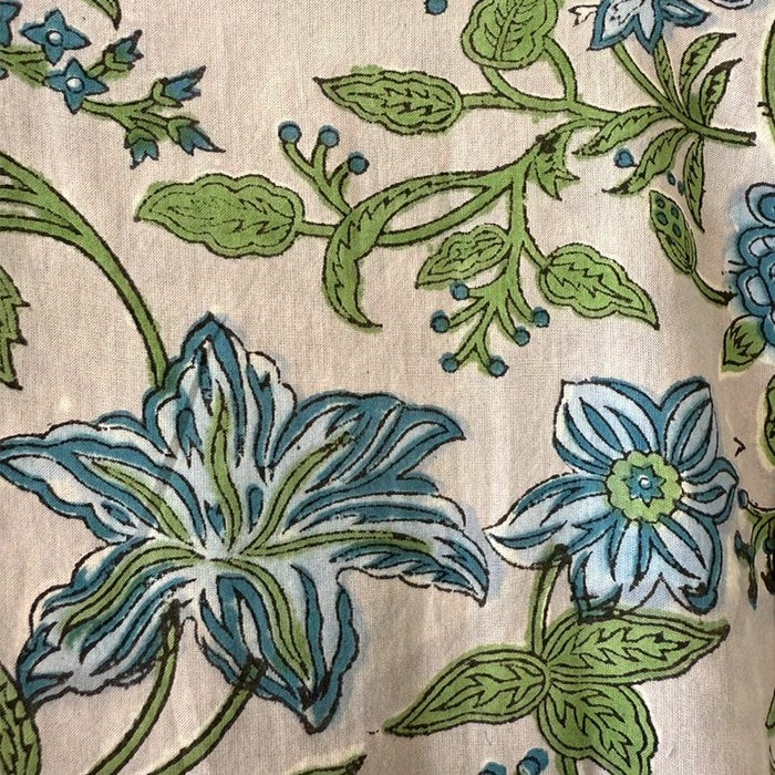 | お手入れ方法 | ・ブロックプリントは素材や染料の特性上、色落ちや色移りの可能性がございますので単独でのお洗濯をおすすめいたします。 ・洗濯機で選択可能ですが必ずネットに入れ、手洗いモードでのお洗濯をお願いいたします。 ・洗濯後は軽くしわを伸ばし、日陰干しでの自然乾燥をおすすめいたします。直射日光は色落ちや変色の原因となりますのでお控え下さい。 ・インドにて水通しされておりますが、入荷後の染色止めは施されておりません。水1Lあたり大さじ1杯の塩を溶かし、一晩漬け置きすると染料を定着させ色落ちがしにくくなります。お試し下さいませ。 |