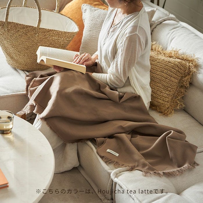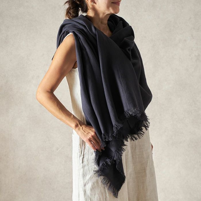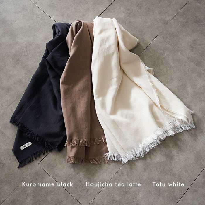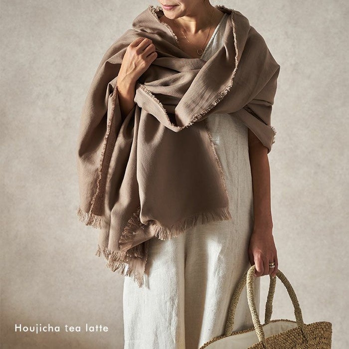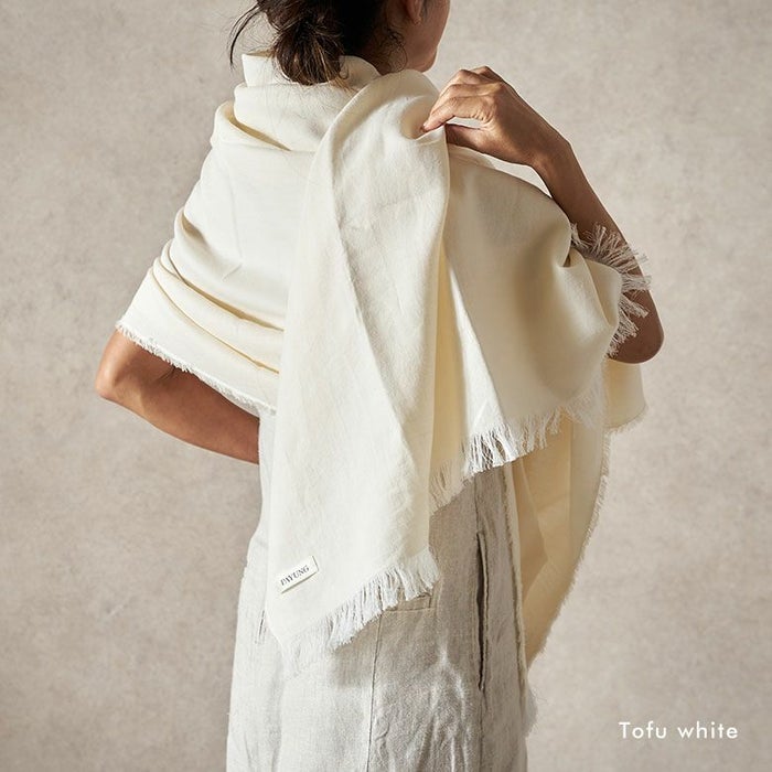自然の恵×伝統の技が織りなす優しい肌触り。シャリっとしつつも柔らかい触り心地は季節を問わず鞄に入れておきたくなる安心感。旅や乗り物移動などで体温調整が難しいかも、と思ったらお守りのように鞄に入れて行って頂きたいストールです。