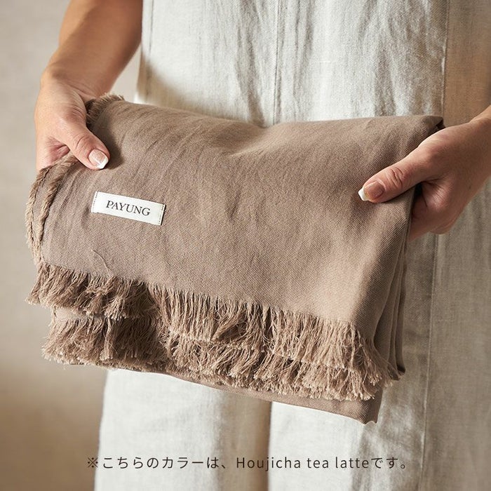 Payungがある兵庫県は北は日本海、南は瀬戸内海と海にも山にも恵まれた自然豊かな土地です。その兵庫県の南西部に位置する播州エリア、山があり川があり豊かな地で200年以上前から織られているのが播州織(ばんしゅうおり)です。 今回Payungオリジナルストールとして作って頂いたのは軽くて肌馴染みのいいコットン100%のストール。ストールとして首に巻くのはもちろん、膝にかけたり日よけとして羽織ったりとマルチに活躍してくれる約100×200㎝の大判のストールです。