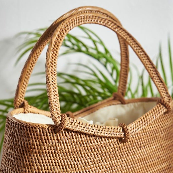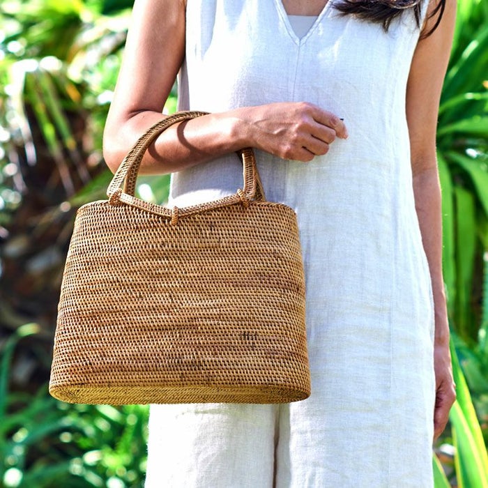 カゴバッグの中でもっとも品があり、丈夫な“アタ”で編まれたカゴバッグ。天然素材のナチュラルな雰囲気と、アタでしっかりと編まれた上品さを兼ね備えたこちらのバッグは、シンプルなワンピーススタイルからデニムスタイル、さらに和装や浴衣まで幅広くマッチします。夏のスタイルをより軽やかに、“自分らしさ”を求めるリゾートコーデ好きな方にぴったりのアイテムです。