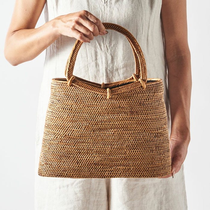 時間をかけてインドネシアの職人が一つひとつハンドメイドで編み上げるアタのバッグは、大量生産のカゴバッグとは異なり、丈夫で長持ち。最近では、夏の装いだけでなく、トレンチコートや秋冬素材とのコーディネートにも注目が集まっています。