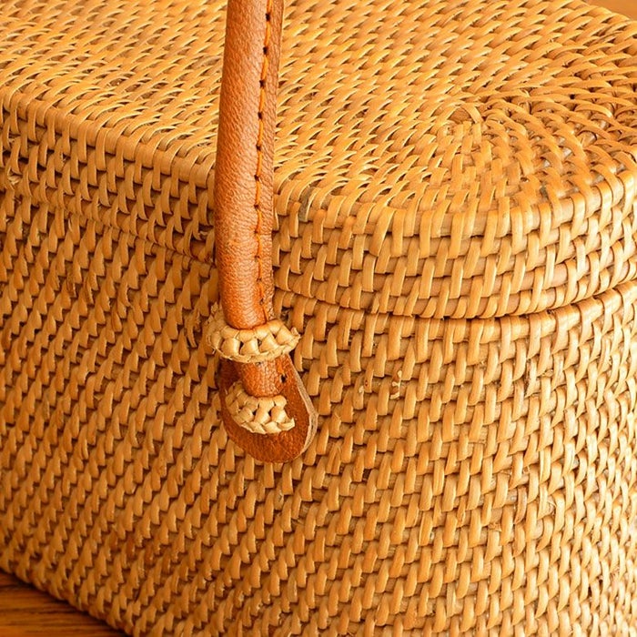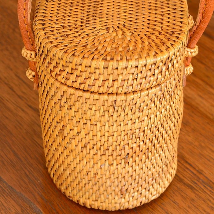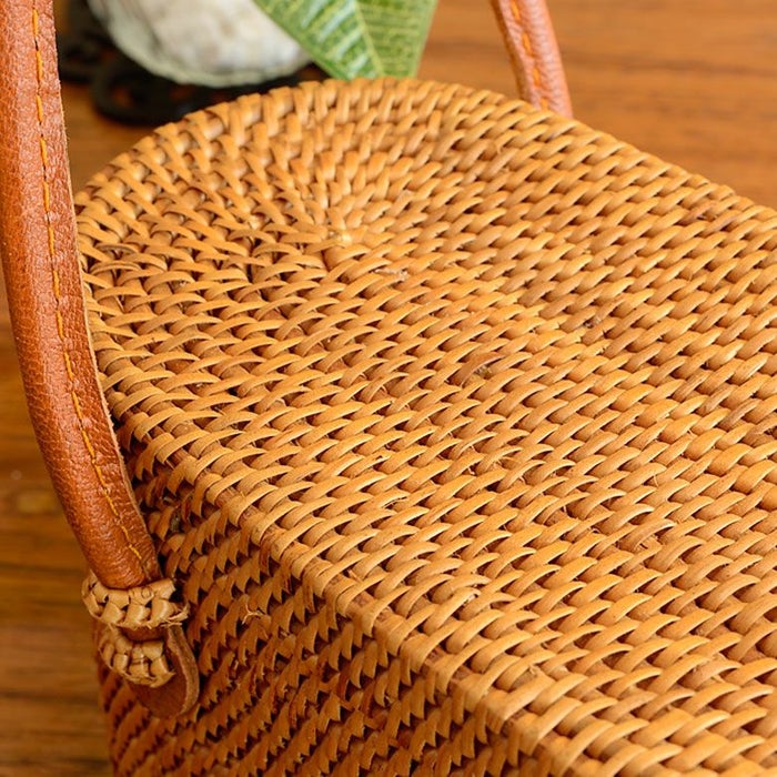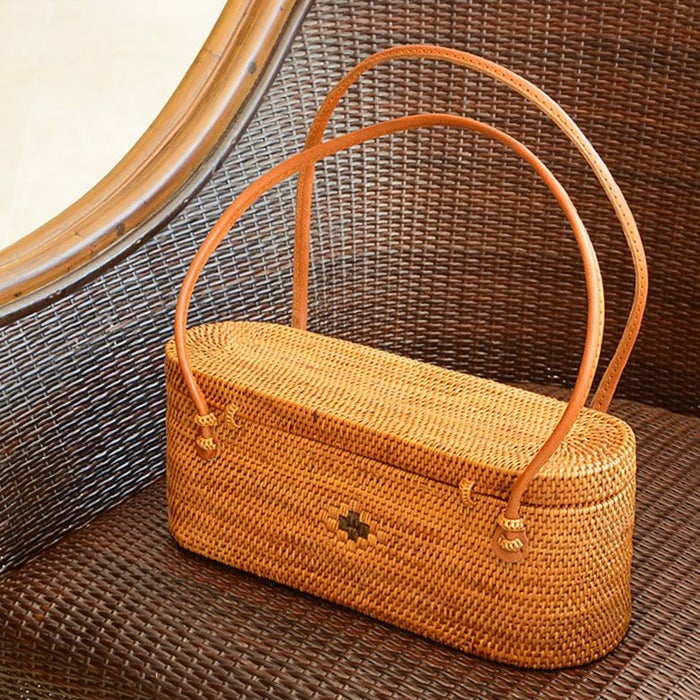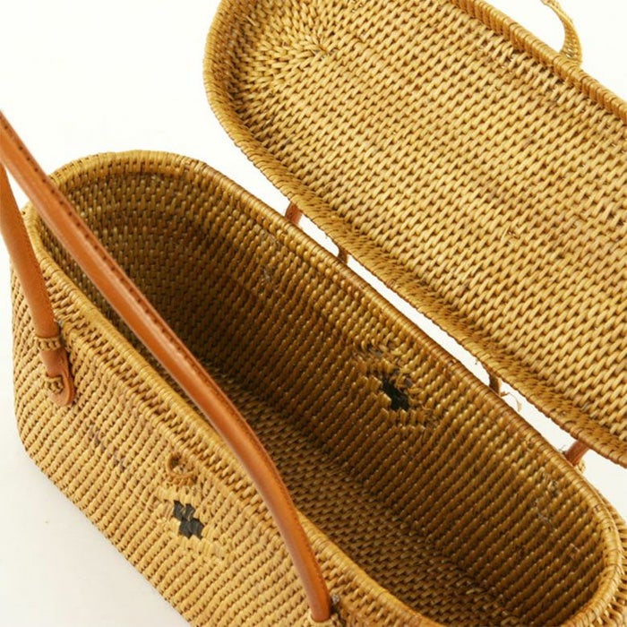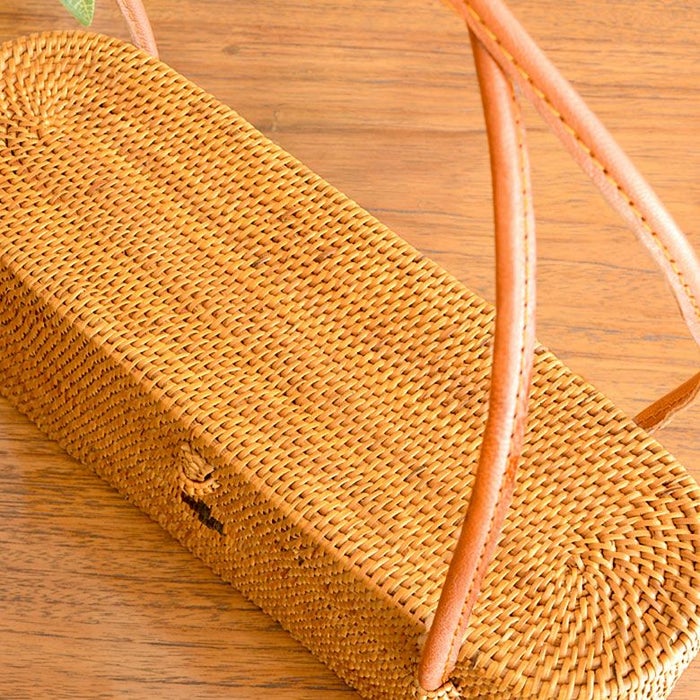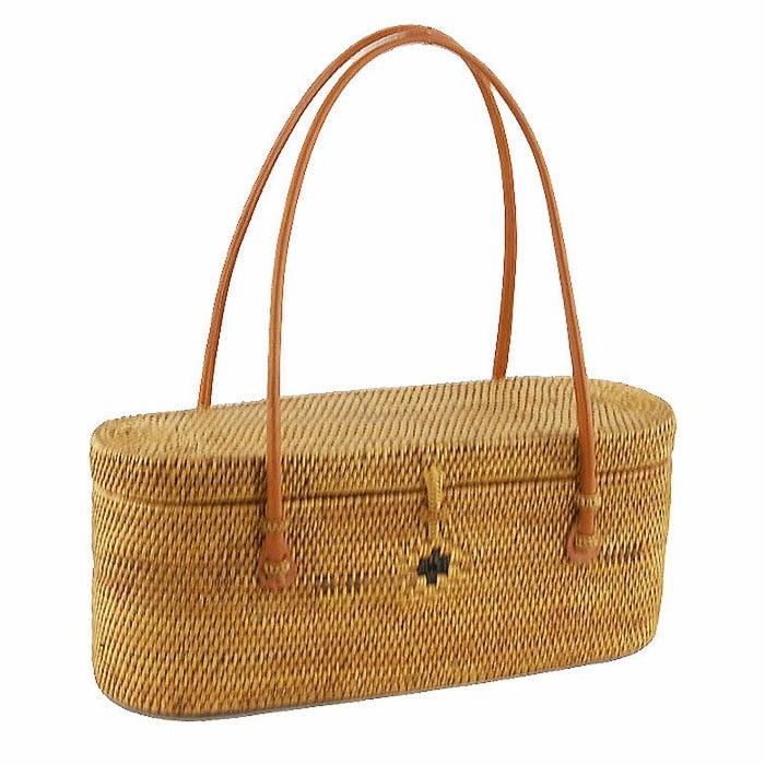 アタで編まれた横長カゴバッグ