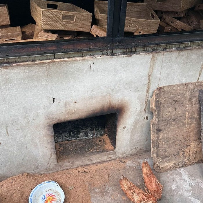 アタはインドネシアに自生する「アタ」というシダ科の植物。そのアタを乾燥させ、茎の部分を丁寧に裂いて編み込み、約一週間天日干しして乾燥させた後、ココナッツチップなどで1~3日間燻します。