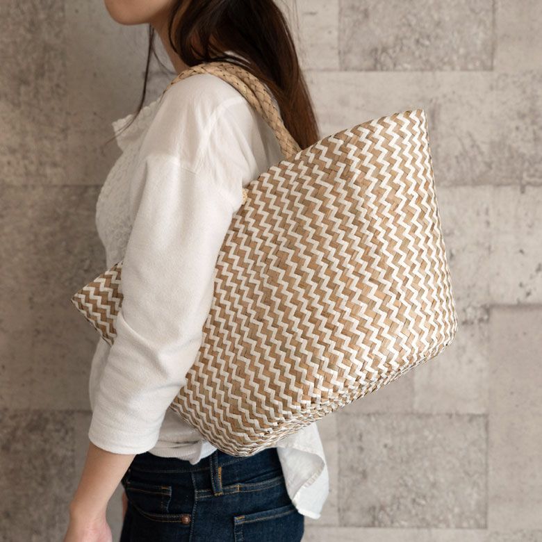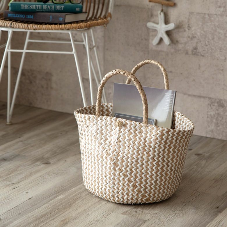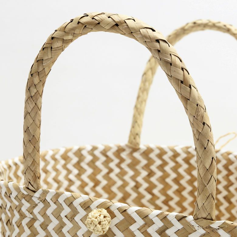 大きめのハンドル付きなので、お買い物バッグや夏のコーディネートに合わせるカゴバッグとしてもお使いいただけます。