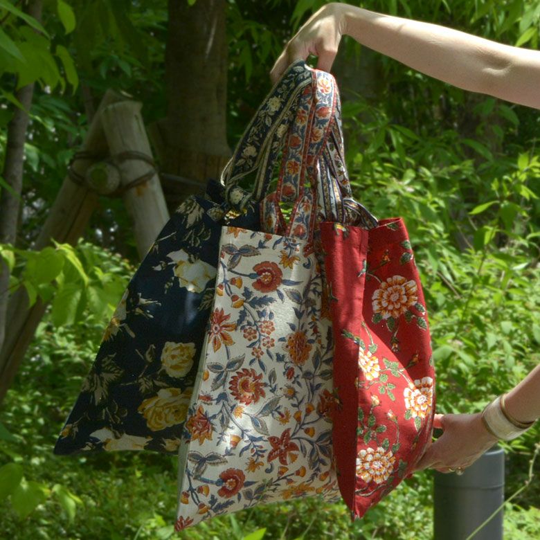 ベースがアイボリーなので肌馴染みがよく、柄物を普段身に着けない方にも使って頂き易いデザイン。 表裏の柄の違いはっきりしているので、ひとつのバックで2柄楽しめる欲張りなトートバックです。