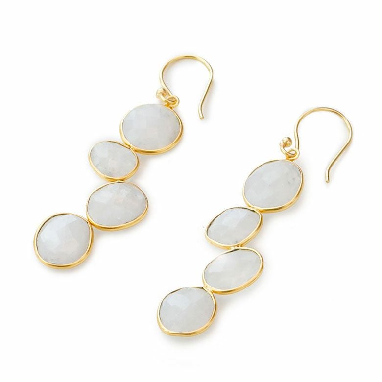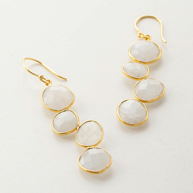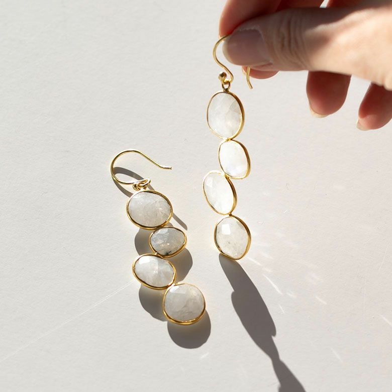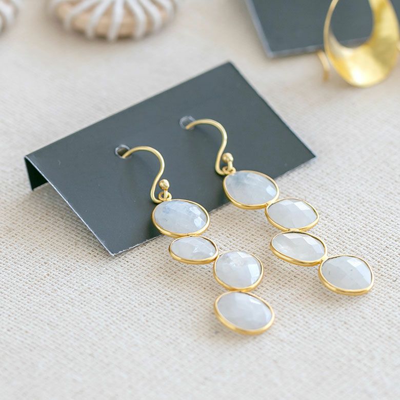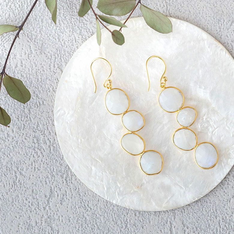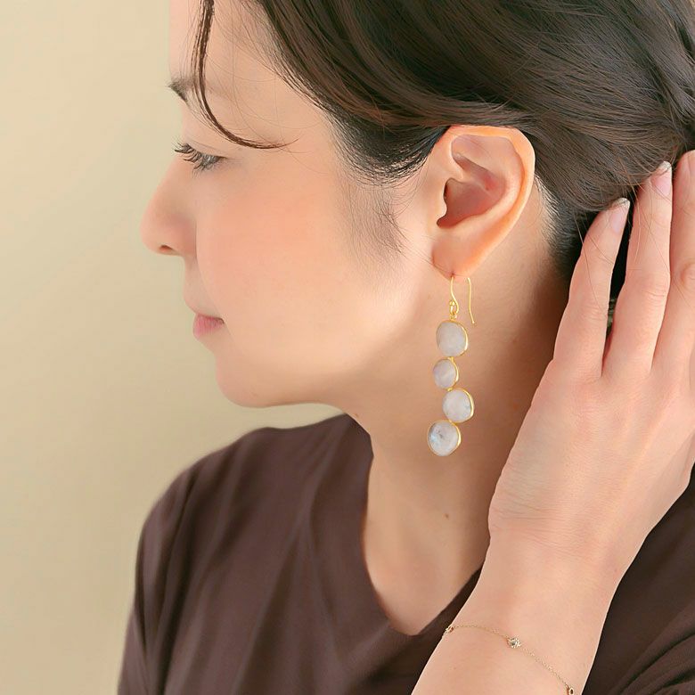 ファセットカットにより、キラキラと反射する光が印象的なレインボーストーンをあしらったピアス。
