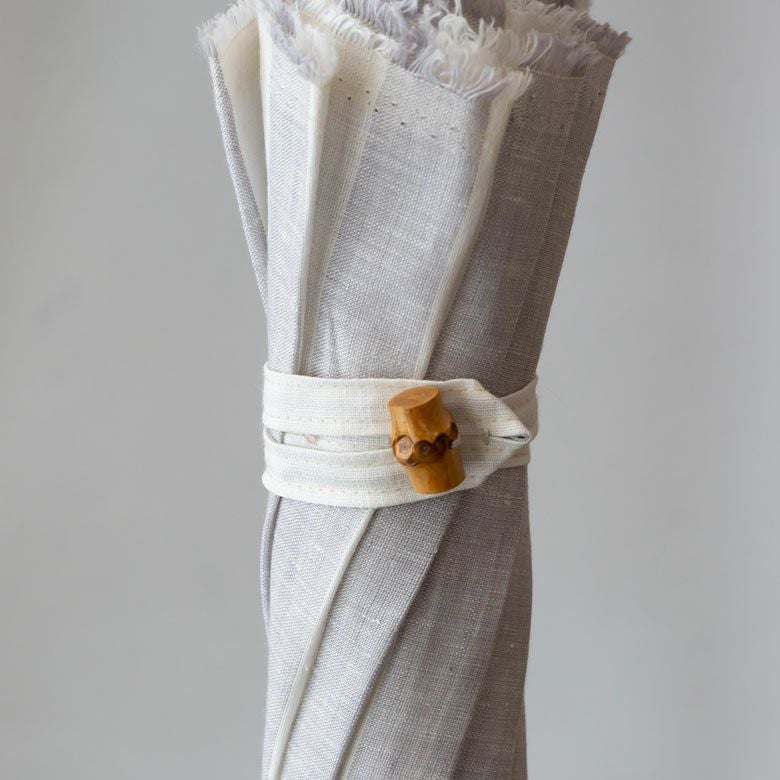 | 素材 | [傘生地]リネン(UV加工|麻100%) [持ち手、先端部分]バンブー [シャフト]樫の木 |