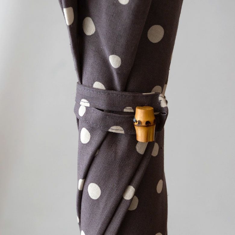 生地はリネン(麻)とコットン(綿)を混合。小さな不ぞろいの水玉模様が描かれ、ファッションを選ばず上質で飽きのこないシンプルなデザインです。