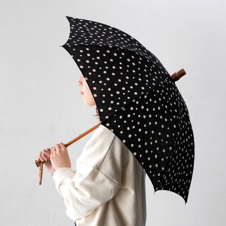 | 素材 | 傘生地:綿55%、麻45% (UVカット率 約90%) 持ち手・先端部分:バンブー シャフト:樫の木 |