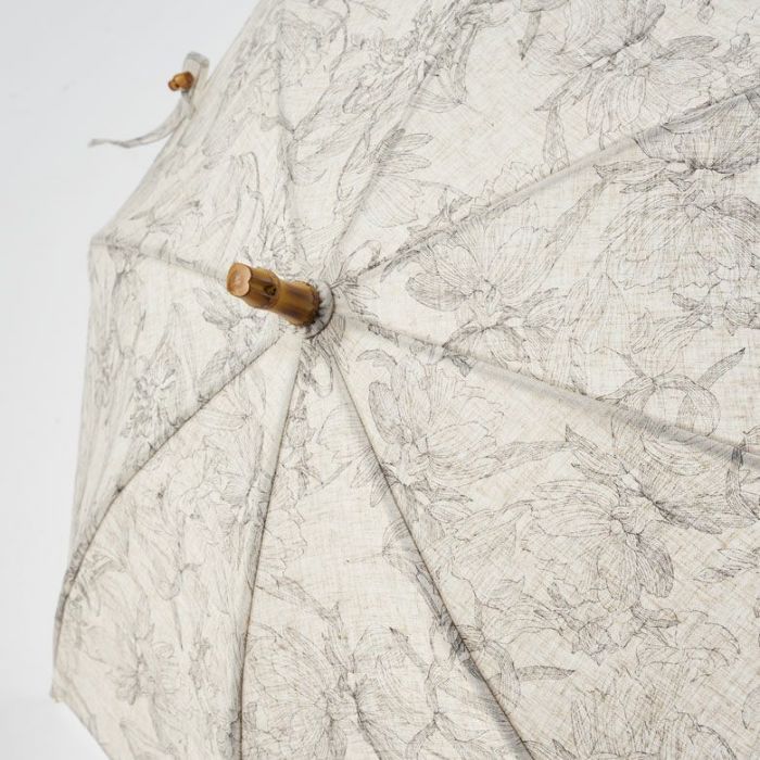 鉛筆でデッサンしたような柄が、繊細且つダイナミックな大人の晴雨兼用傘。毎年人気のmade in JAPANの日傘で、レーヨンと麻が使われており、上質で品があり、大人の女性に人気です。生地のベースは生成りカラーで落ち着きがあり、コーディネート全体を落ち着いた雰囲気に見せてくれます。柄は大きめですが、描かれている線が細いため主張し過ぎることなく、大人の夏のワンピースやジャケット合わせも◎。オンにもオフにも活躍してくれる傘です。