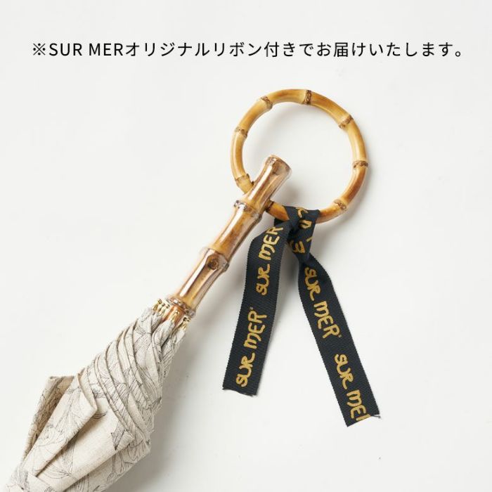 このSUR MERの傘を一度手にすると他の傘が持てなくなります。重いとは違った、”しっかりと”作られていることがわかるハンドメイドの晴雨兼用傘。店頭で広げてみたお客さまが後日”やっぱり…”と戻って来られることも多いです。 日傘は春先から秋まで半年以上長く、そして毎日のように使うものです。実用品としてではなく、ファッションの一部として楽しんで選んで頂きたいと思います。 どこか和を感じるこちらの柄は着物合わせも素敵だと思います♪