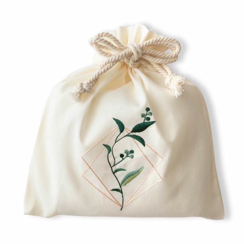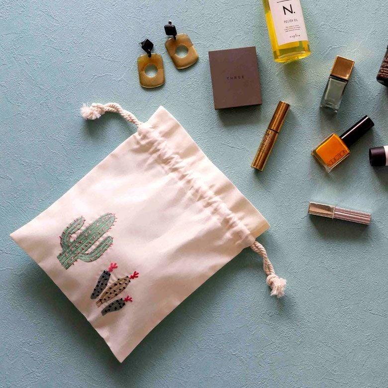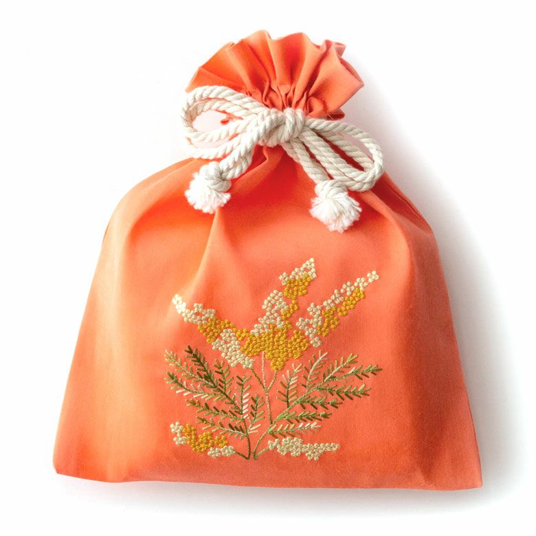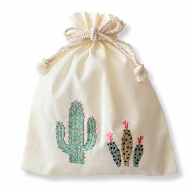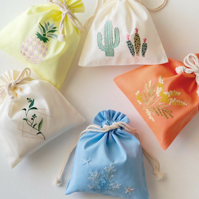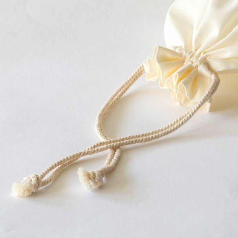 ロープ状の紐やパリッとした生地も巾着の可愛さを引き立ててくれます。