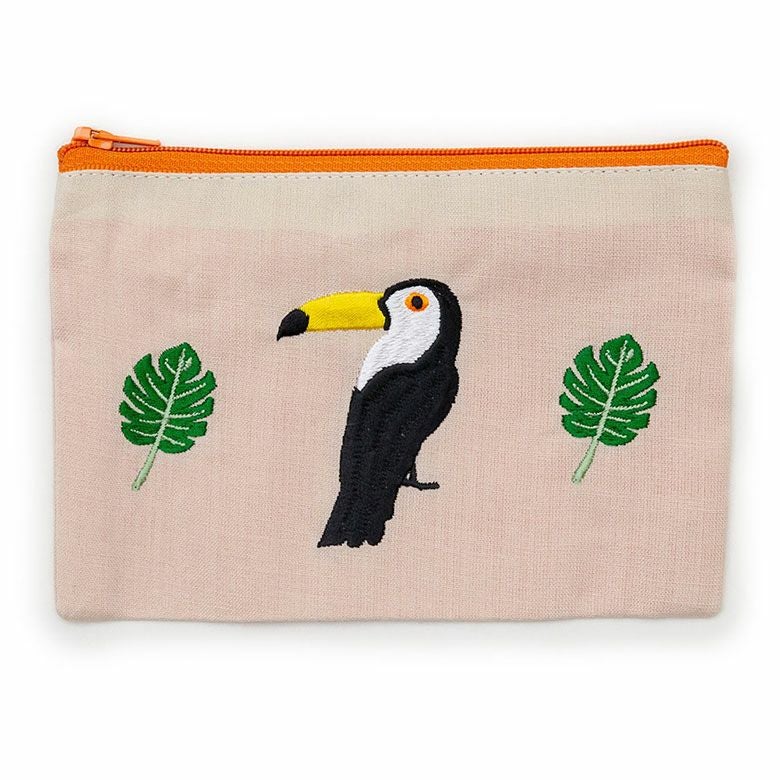 南国感あふれるカラフルポーチは3柄。バックの中で迷子になりがちなマスク入れや化粧ポーチとして重宝するサイズです。