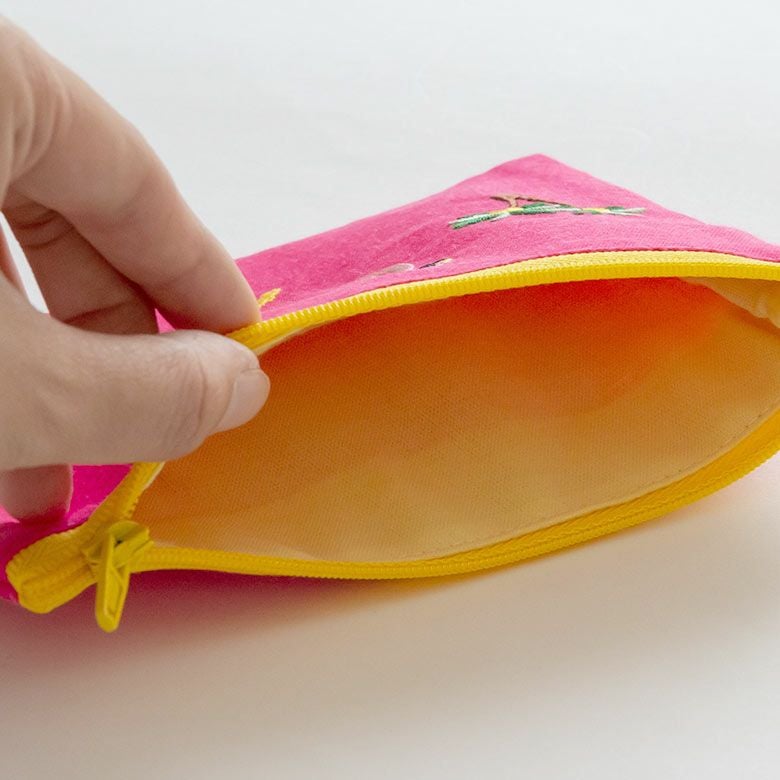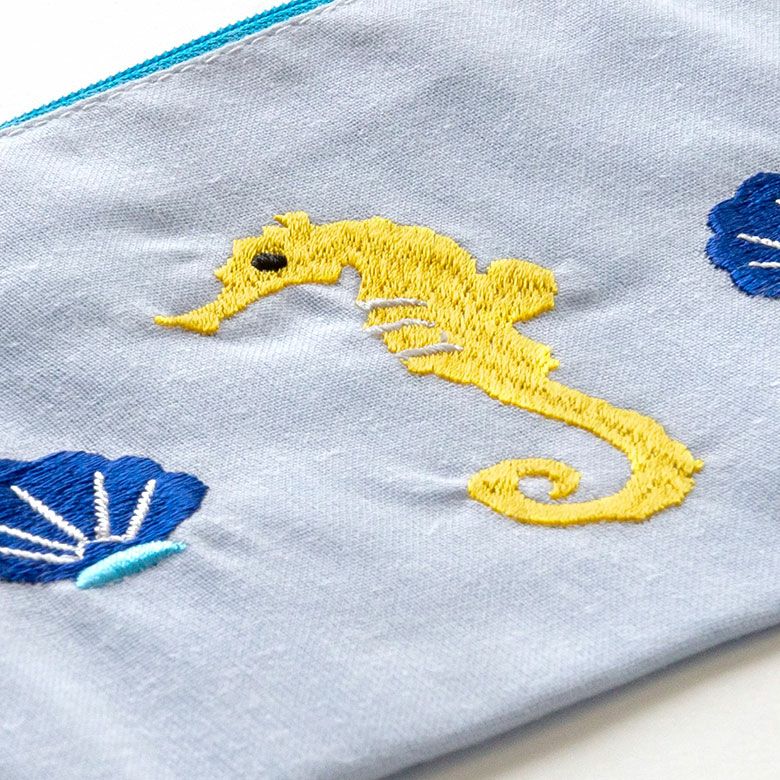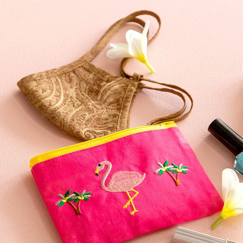 こちらは、ベトナムの職人さんが刺繍を施し、手間暇かけて作ったポーチ。