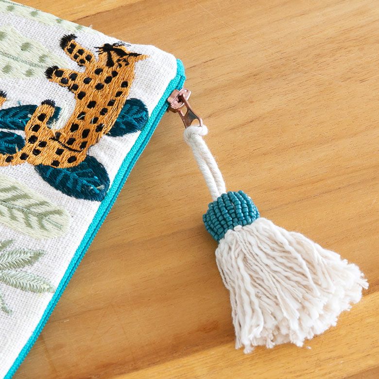 持ち手の大ぶりのタッセルにはビーズも付いていて可愛さUP☆