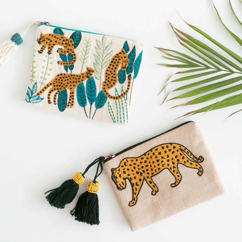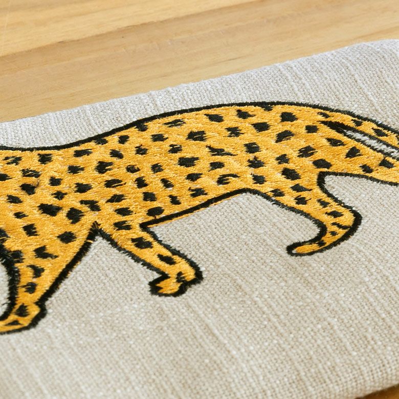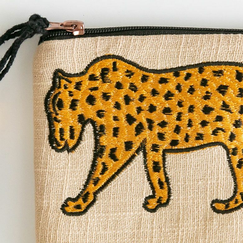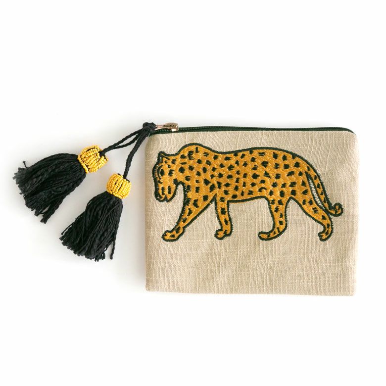 ダイナミックなレオパードを手刺繍で施したポーチです。内ポケット付きで便利◎