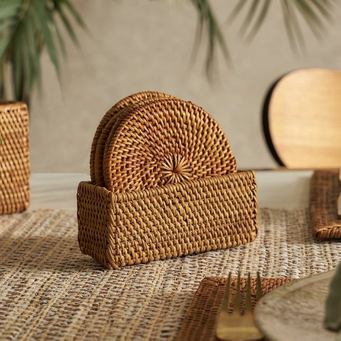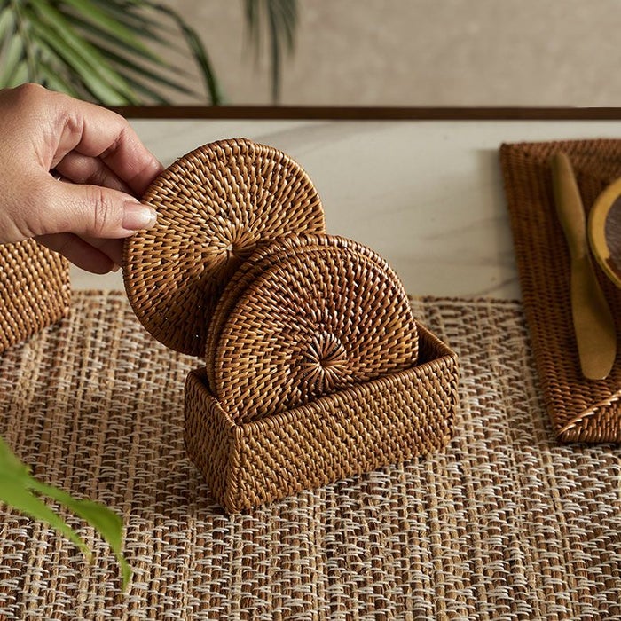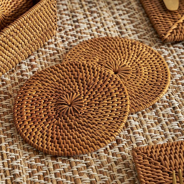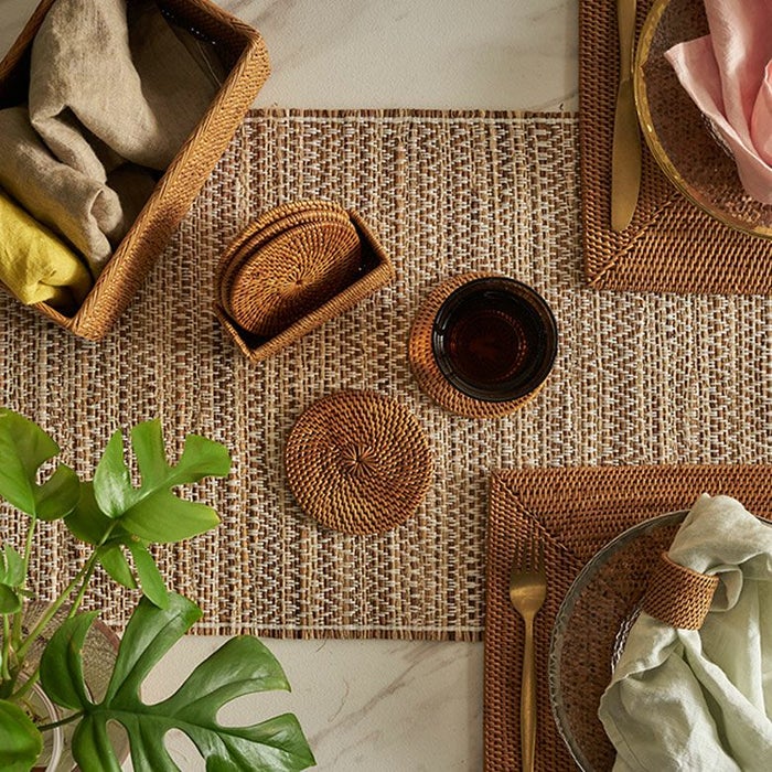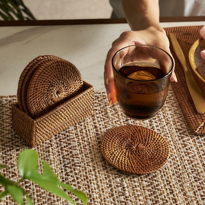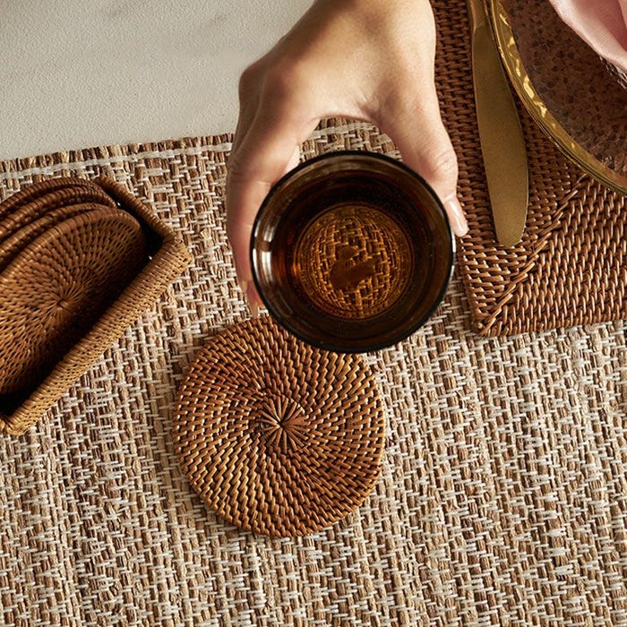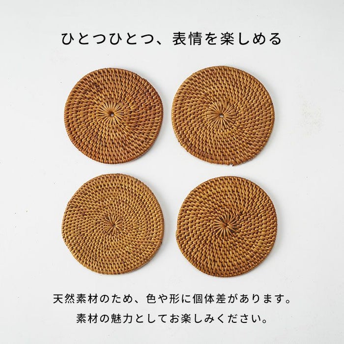 コースターは汚れが気になるアイテムですが、アタは水にも強く、汚れてしまった場合もさっと拭き取るか、軽く洗えばOK。丈夫で水や汚れに強く、汎用性の高さにも優れています。基本的なお手入れは、柔らかい布を使った乾拭き程度で大丈夫です。 汚れが目立つ場合は水洗いし、日陰でよく乾燥させてください。