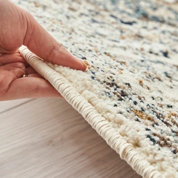 ノット数は126,000。ギュっと目が詰まっており、程よく沈みこむような心地良い質感です。端はオーバーロック加工というほつれを防ぐ加工が施されており、安心して長くお使い頂けます。毛足は長過ぎず短過ぎない厚さ1㎝。柔らかい触り心地で通年通して使い心地の良い質感です。
