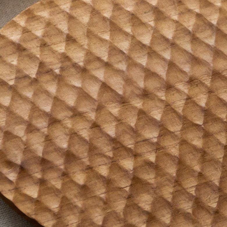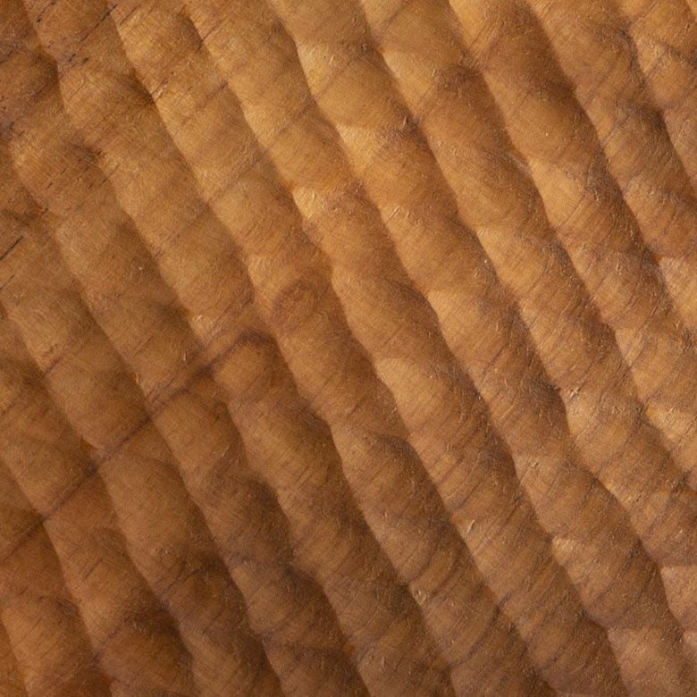 木材の表情がより一層豊かに際立つように、表面を立体的に削り出す「名栗(なぐり)加工」を施しています。