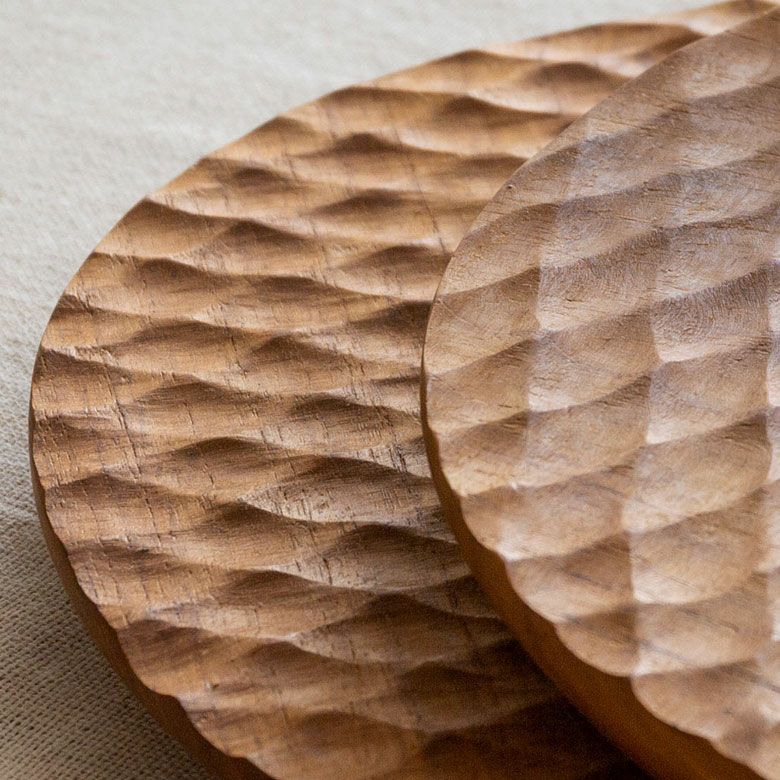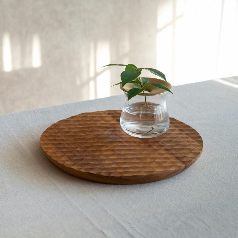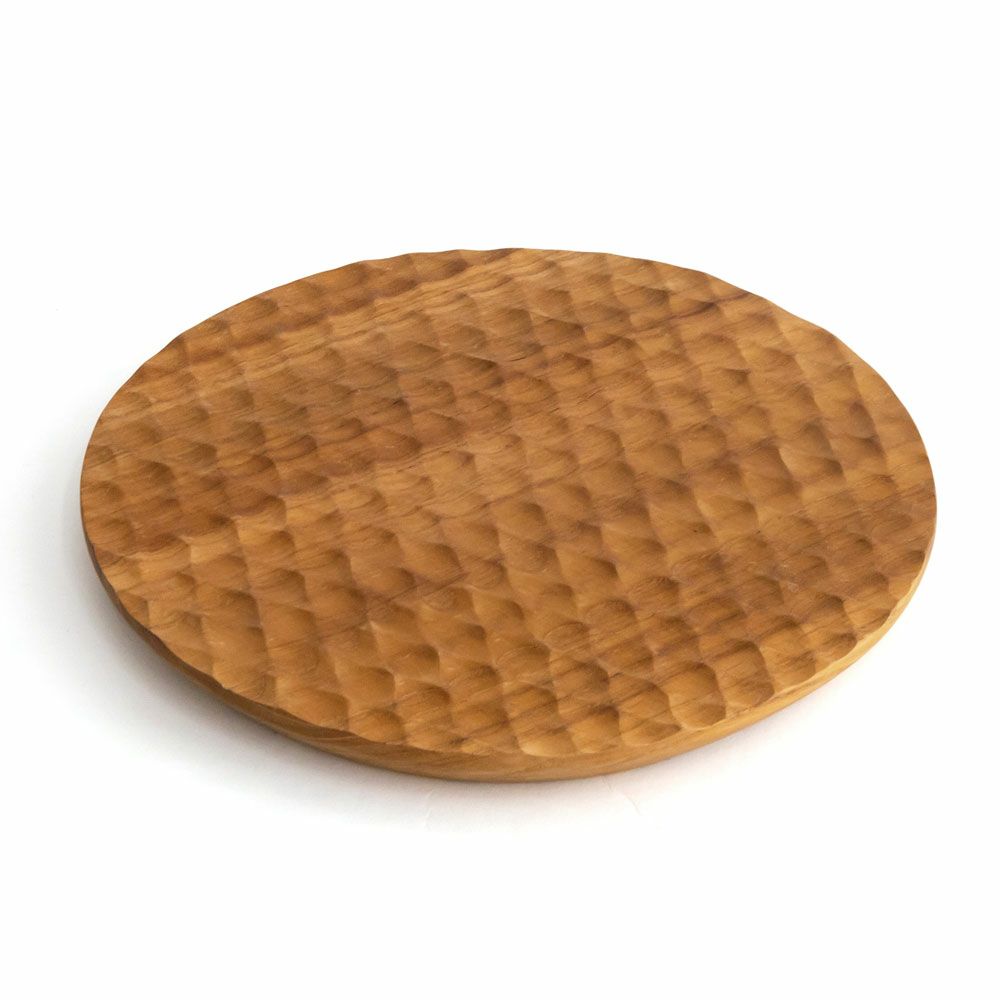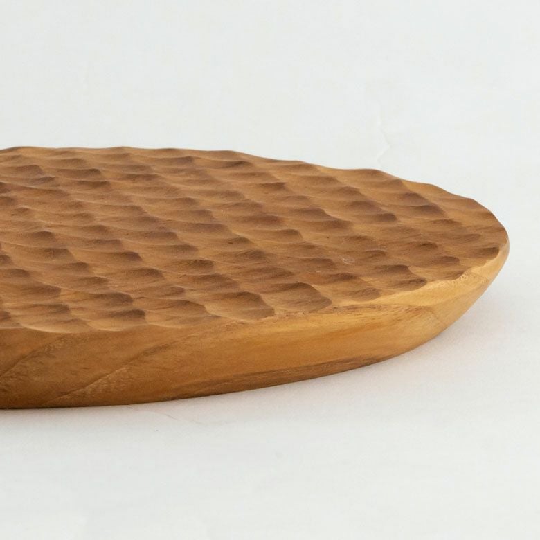 チーク無垢材の1枚板を丁寧に彫った贅沢なプレート。