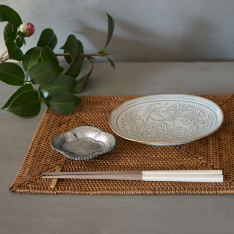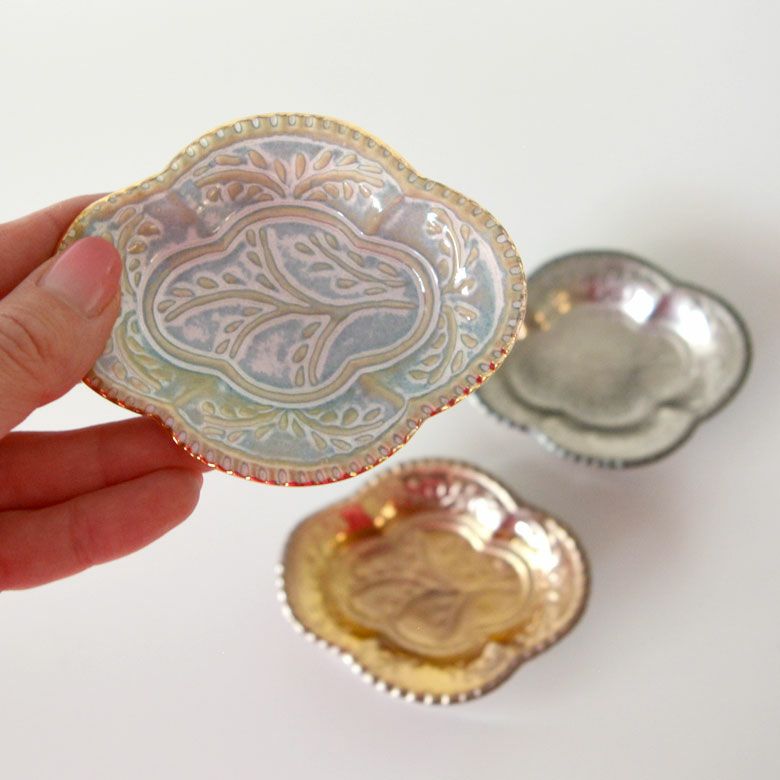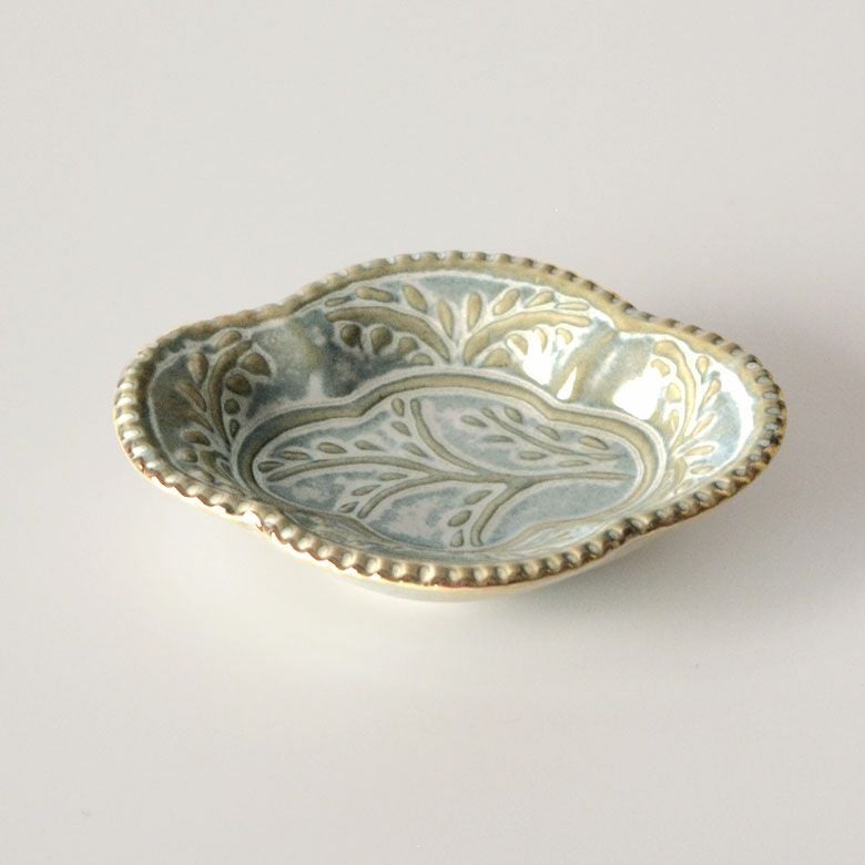 小さなお菓子を入れたりお醤油や薬味を入れておくだけで、普段の食卓を華やかな雰囲気に変えてくれる一皿。