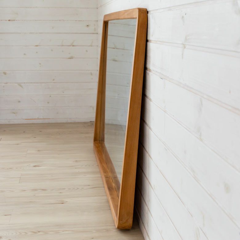 チーク材の特性を生かし、贅沢に無垢にこだわって作ったウォールミラーは