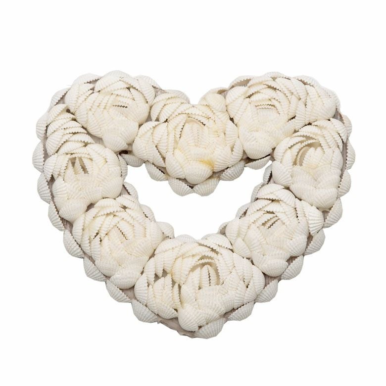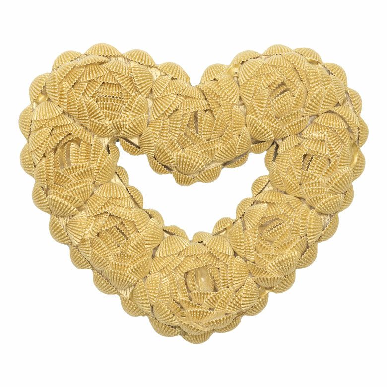 貝殻をバラの花のようにデコレーションした、ハート型オーナメント。