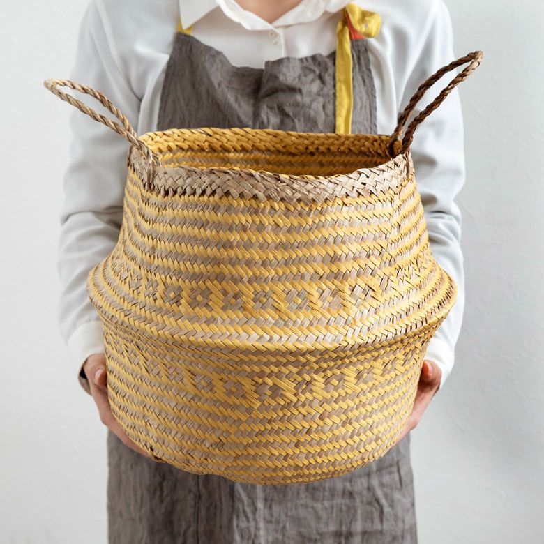 柔らかくしなやかな天然素材、シーグラスの大きめバスケット。