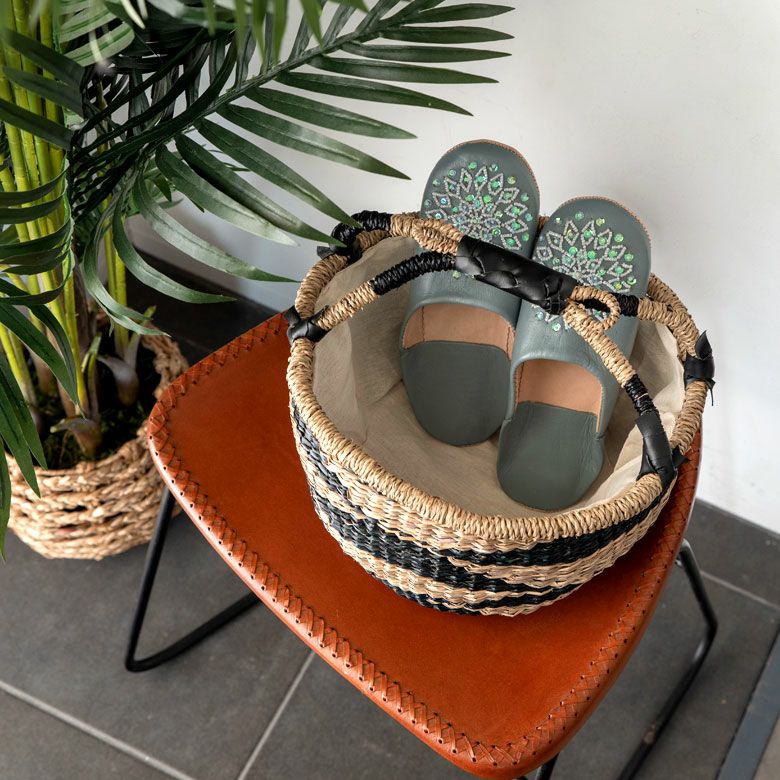柔らかくしなやかな天然素材、シーグラスのバスケット。
